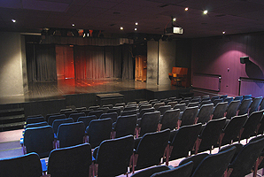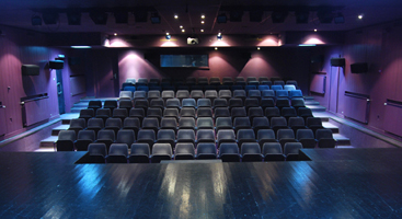Факултетот располага со сцена-кутија, со гледалиште од 120 седишта. Димензиите на сцената се 8 х 10 метри. На сцената постои и подвижно платно кое овозможува проекција од сите видови проектори, графоскопи, епископи, слајд проектори и сл. Сцената и гледалиштето се озвучени со Долби сараунд, а кабината е опремена со засилувачи, магнетофони, касетофони, CD, DVD, радио, аудио миксета, видео миксета, компјутерска светлосна миксета, LCD проектор (видео бим), проектори 16 мм и 8 мм. Салата е осветлена со халогено светло, а сцената ја покриваат 20 рефлектори од по 1000 W распоредени на три нивоа (4 + 10 + 6).